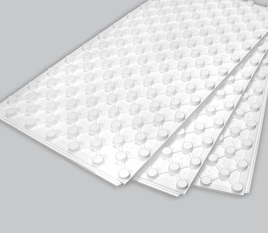 Polietilen malzemenin sağladığı esnek yapısı sayesinde bu malzeme, üzerinde yürünebilecek ve ezilmeye karşı dayanıklı bir yapı oluşturduğu için yerden ısıtma sistemi sonrası dökülen şap betonu altında da hiçbir sorun oluşturmadan çok uzun ömürlü bir dayanıklılık sağlamaktadır. Her bir parçası 1 m2 boyutlara sahip olan bu ürünler, üzerinde döşenen boru sistemi ile birlikte yan yana gelen kalıplarında sorunsuz kanallar sağlayarak, yerden ısıtma boruları için en doğru zemin düzeneğini mümkün hale getirir.