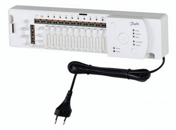 Danfoss kontrol paneli kullanılan oda termostatlarının kablolu veya kablosuz olmasına göre değişen şekiller ile standart elektrik hattından besleme alarak çalışan panellerdir. Bu paneller oda termostatlarının göndermiş olduğu sinyalleri kendi üzerinde anlamlı hale getirdikten sonra yine farklı bir sinyal çeşidi ile aktüatör üzerine gönderir. Bu sayede termostatik vana gerekli su ayarlamalarını kollektör üzerinde sağlayarak, otomasyon sisteminin görevinin tamamlanmasını sağlar.